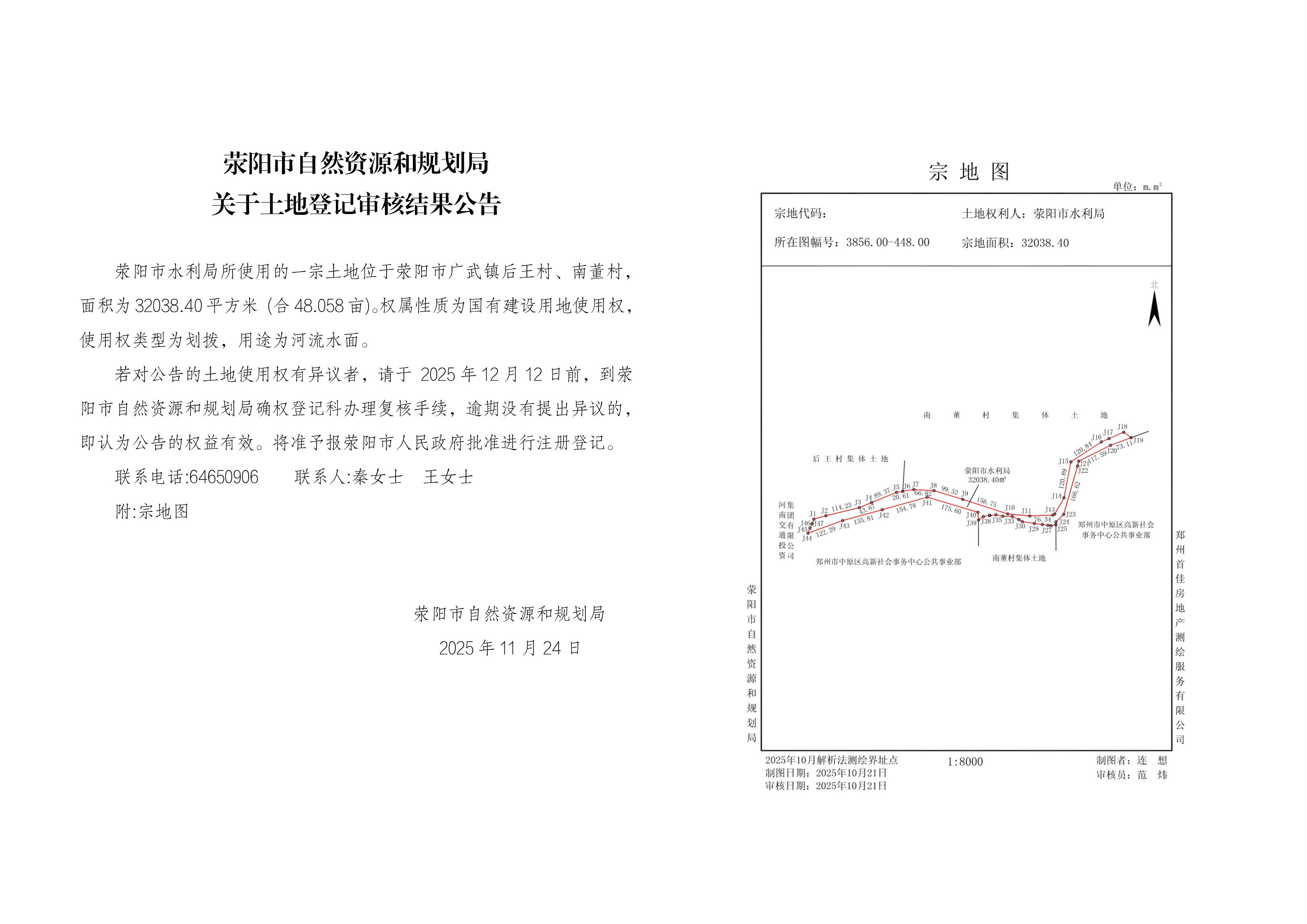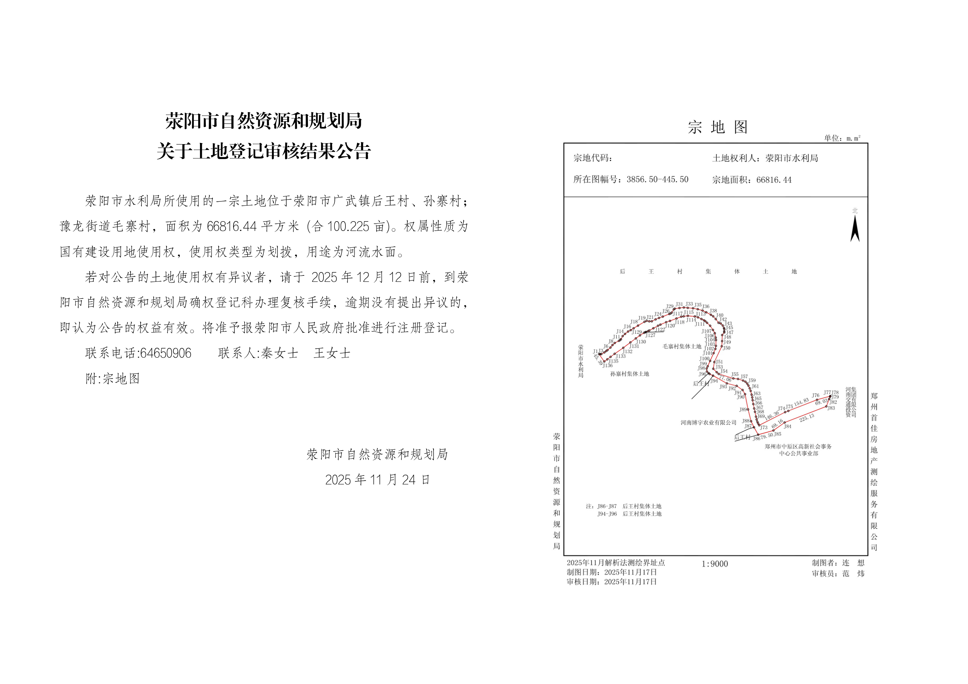 荥阳市自然资源和规划局 关于土地登记审核结果公告